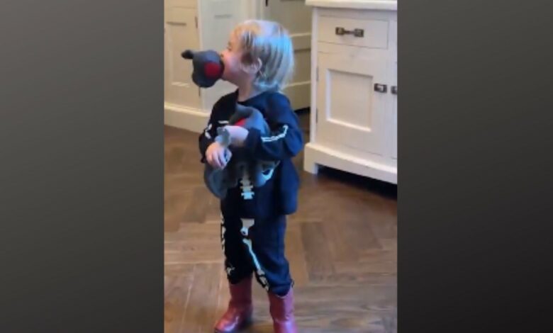 Ozzy Osbourne’s grandson bites off a bat’s head in an adorable Halloween video.