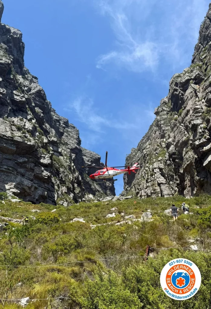 Οι υπηρεσίες Wilderness Search & Rescue και οι φύλακες του SanParks ειδοποιήθηκαν άμεσα και κινητοποίησαν ομάδες διάσωσης, καθώς και ελικόπτερο, για να ερευνήσουν την πλαγιά του βουνού. Ο βαριά τραυματισμένος πιλότος εντοπίστηκε στις 10 το πρωί και μεταφέρθηκε με ελικόπτερο από το Table Mountain σε ασθενοφόρο, μπροστά στα μάτια σοκαρισμένων τουριστών στον δρόμο από κάτω.