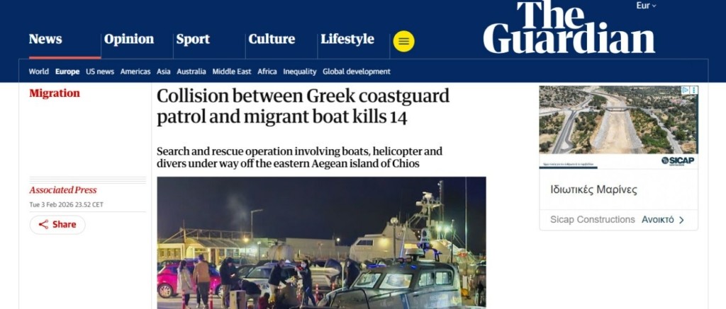 Η Le Monde κάνει αναφορά σε πρόσφατα περιστατικά στην Ελλάδα. «Από τις αρχές Δεκεμβρίου 2025, 17 άτομα εντοπίστηκαν νεκρά μετά την ανατροπή του σκάφους τους στα ανοικτά των ακτών της Κρήτης (νότια Ελλάδα) και 15 άλλα αγνοούνταν. Μόνο δύο άτομα επέζησαν.
