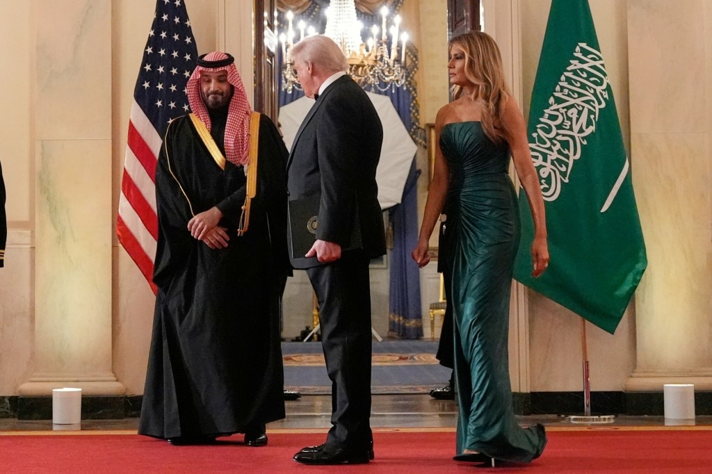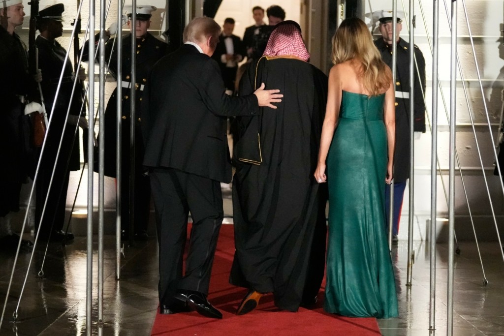 Εντύπωση, επίσης, προκάλεσε η Μελάνια Τραμπ, η οποία εμφανίστηκε με ένα σμαραγδένιο φόρεμα χωρίς τιράντες, σε χρώμα που παραπέμπει στη σημαία της Σαουδικής Αραβίας, μια επιλογή που θεωρήθηκε ως ένδειξη στήριξης προς τον πρίγκιπα διάδοχο, του οποίου η επίσκεψη στον Λευκό Οίκο έχει προκαλέσει αντιδράσεις λόγω της υπόθεσης Κασόγκι και του ρόλου της Σαουδικής Αραβίας στις επιθέσεις της 11ης Σεπτεμβρίου.