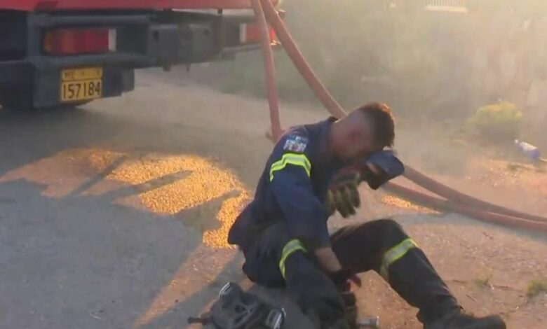 Βίντεο: Η στιγμή που εθελοντής πυροσβέστης καταρρέει ενώ επιχειρεί στη φωτιά στο Κρυονέρι