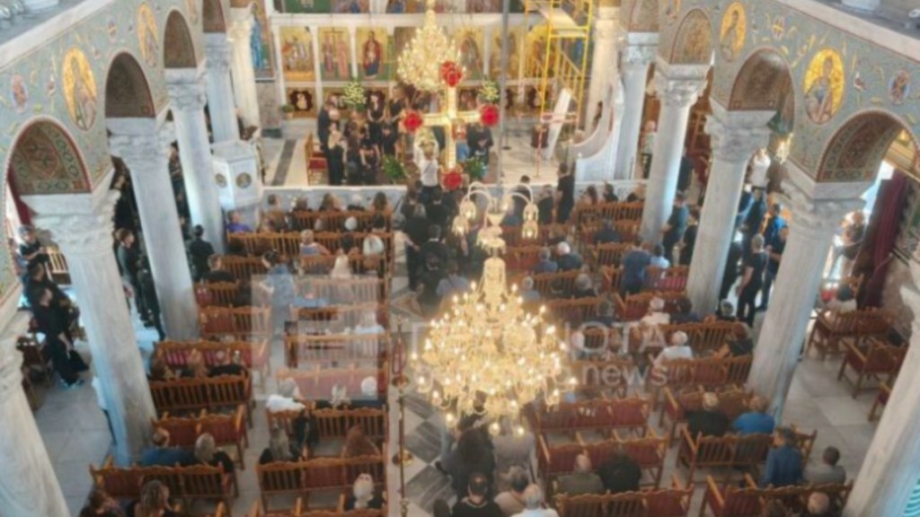 Φίλοι και συγγενείς συγκεντρώθηκαν στον Ιερό Ναό Αγίων Κωνσταντίνου και Ελένης στον Βόλο για να πουν το τελευταίο αντίο στον 20χρονο Ιάσονα, που σκοτώθηκε, πέφτοντας στον φωταγωγό πολυκατοικίας.