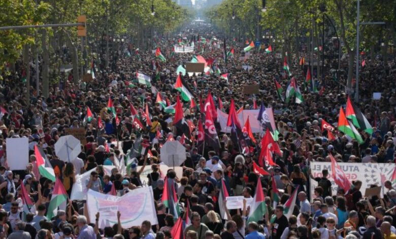 Κατά τα άλλα, χιλιάδες άνθρωποι διαδήλωσαν στο κέντρο της Βαρκελώνης, σε ένδειξη υποστήριξης προς την Παλαιστίνη, ζητώντας το τέλος του πολέμου στη Γάζα και τη διακοπή πώλησης όπλων στο Ισραήλ.