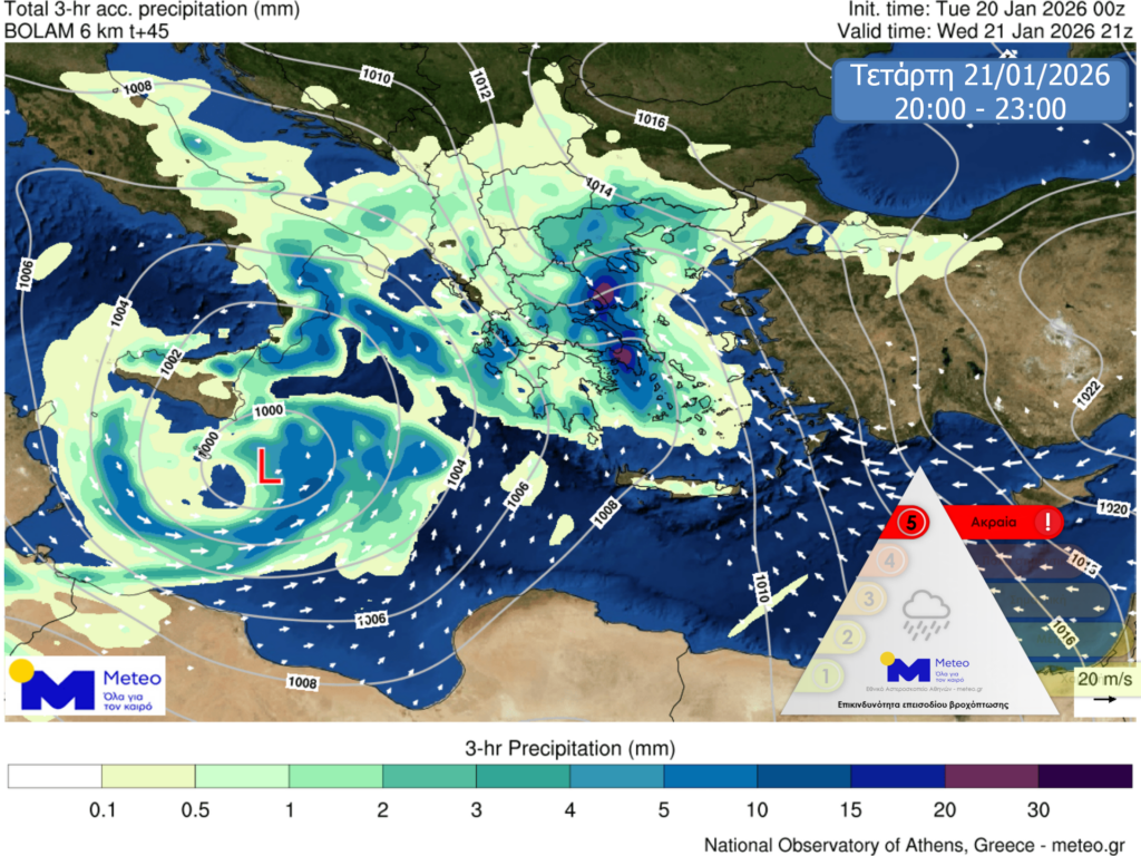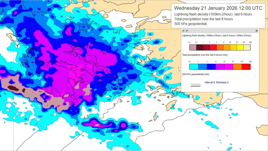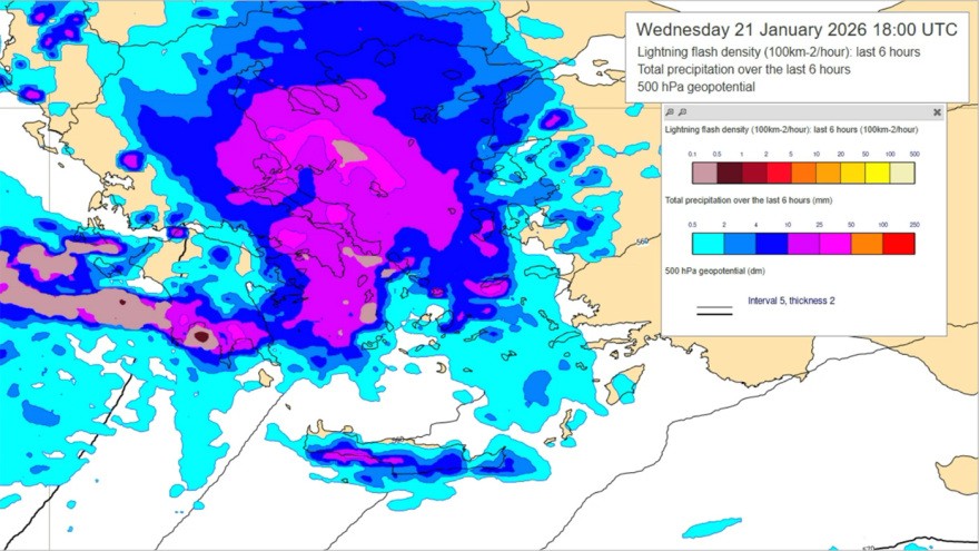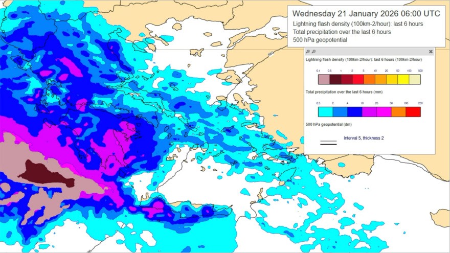 Σύμφωνα με τα στοιχεία του meteo για σήμερα Τετάρτη 21 Ιανουαρίου 2026: