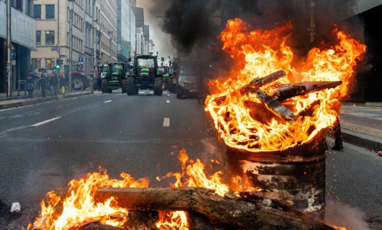 Βρυξέλλες: Σοβαρά επεισόδια και δακρυγόνα στη συγκέντρωση των αγροτών έξω από το Ευρωπαϊκό Κοινοβούλιο (live)