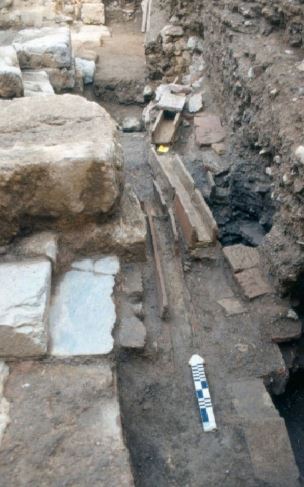Στη δυτική πλευρά του αύλειου χώρου βρέθηκε φρεατοδεξαμενή, η οποία περιέπεσε σε αχρηστία και γέμισε με μεγάλη ποσότητα κεραμικής απόθεσης (κυρίως, αγγεία συμποσίων) του τελευταίου τετάρτου του 4ου αιώνα πΧ. Στο μεσαίο δωμάτιο υπάρχουν κατάλοιπα παλαιοχριστιανικού κτηρίου, ενώ στο νότιο δωμάτιο έχουν εντοπιστεί οδοστρώματα ανιούσας οδού κλασικών, αρχαϊκών και γεωμετρικών χρόνων. Εντοπίστηκαν, επίσης, παλαιοχριστιανικά και βυζαντινά κατάλοιπα, τα οποία έχουν ως επί το πλείστον απομακρυνθεί. Τα προς ανάδειξη αρχιτεκτονικά κατάλοιπα ανάγονται στον 4ο αιώνα πΧ.
