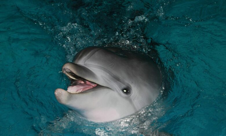 Τα δελφίνια εμφανίστηκαν στο ύψος του γλυπτού το «Φεγγαράκι στην Ακτή», «μαγνητίζοντας» τα βλέμματα των περαστικών.