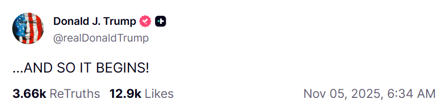 Την ίδια ώρα, και ενώ ο Μαμντάνι έλεγε στον Τραμπ να «δυναμώσει την ένταση», ο Τραμπ «απάντησε» μέσω Truth Social: «…και έτσι ξεκινά!»